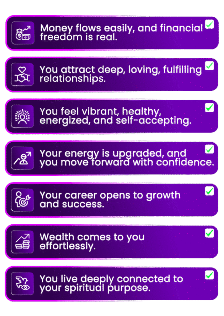 During this divine timing, you’ll begin manifesting your dream life and feel a powerful inner shift that effortlessly attracts better health, loving relationships, career growth, financial abundance, and deep spiritual alignment.